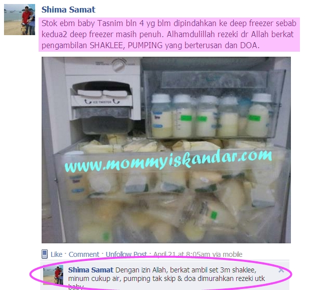 Menurut Pn Shima, sekali pam beliau boleh dapat 11-12 oz. Apa yang hebatnya, anak beliau baru 7 bulan, tapi stok susu dah ada 2 deep freezer penuh di rumah, ditambah dengan stok susu bawah ni yang tak tau nak pindah kat mana lagi dah.. Ha.. dasyatkan.. jom tengok ya..