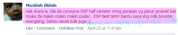 Banyak lagi testimoni hebat ESP boleh dilihat DI SINI ya.. Sememangnya ESP cantikkan kulit dan milkbooster terbaik!
