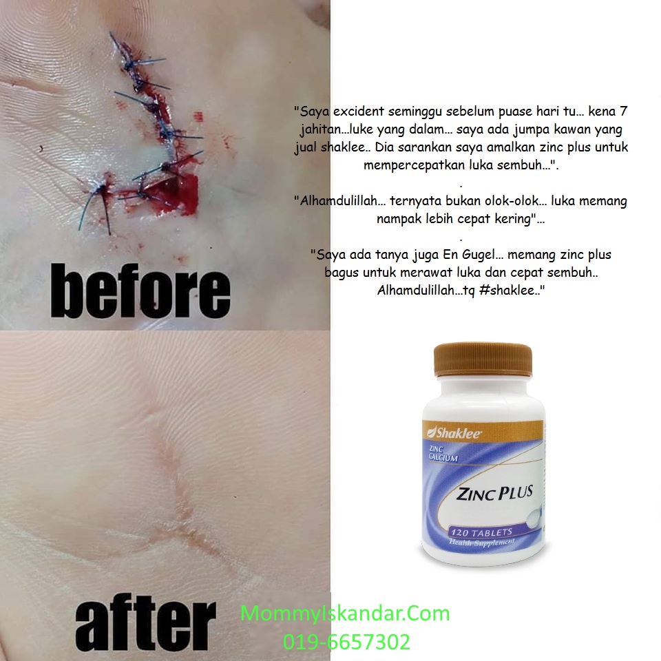- Mempercepatkan Penyembuhan Luka – Zinc membantu luka dalaman dan luaran cepat sembuh. Individu yang baru menjalani pembedahan, mengalami alergi dan bintik di kulit sangat dicadangkan mengambil Zinc