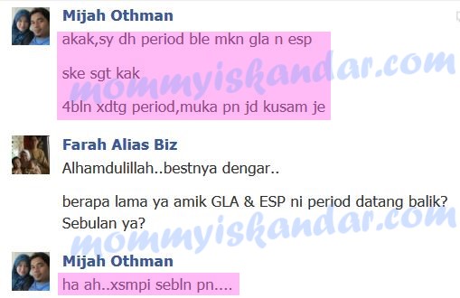 Testimoni 1: 4 bulan tak datang period, cuba GLA dan ESP, sebulan period dah ada