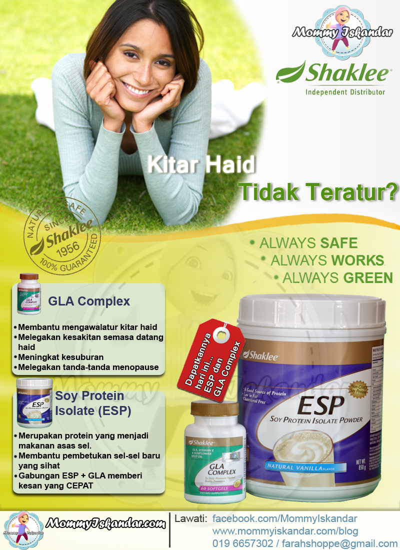 Supplement apa yang sesuai? Semestinya GLA dan ESP. Gabungan keduanya sangat bagus untuk membantu anda mengawalatur kitar haid anda juga masalah senggugut. Namun, jika budget anda terhad, mulakan dengan GLA dulu ya..
