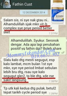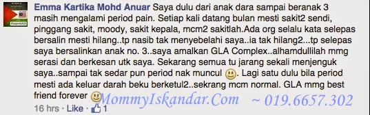 Antara testimoni customer yang gembira kerana tidak lagi menderita senggugut setiap kali datang haid..