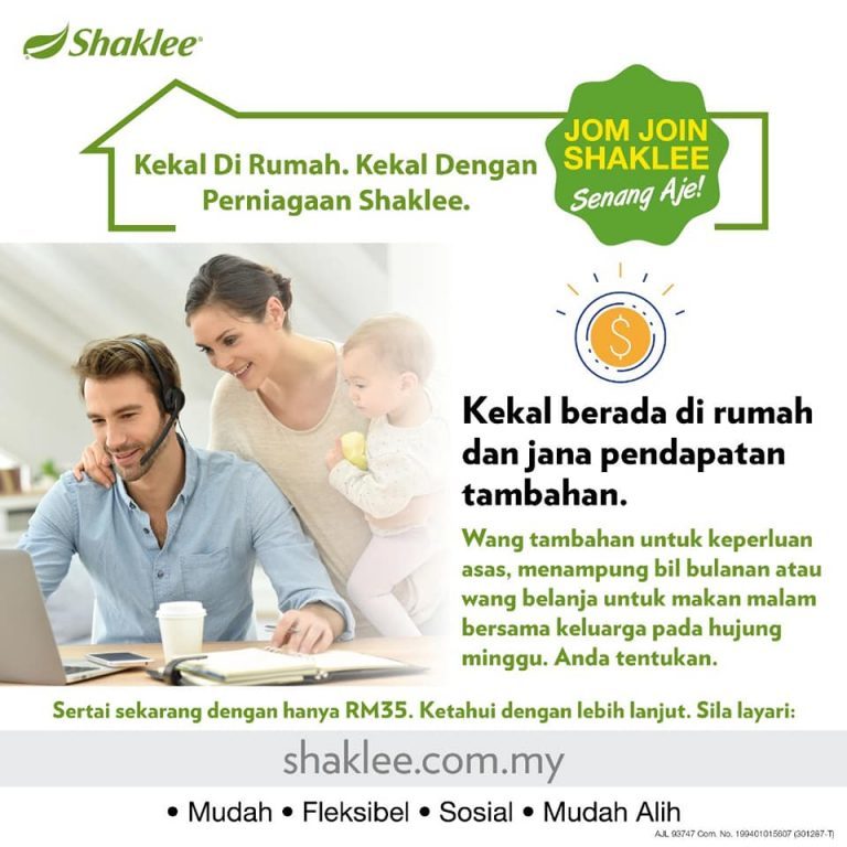 Jadi apa bisnes yang saya lakukan? Saya menjalankan bisnes Shaklee, iaitu berkongsi kebaikkan makanan tambahan atau suplemen Shaklee. Siapa tak kenal Shaklee? Brand terkenal dan diyakini berpuluh tahun lamanya. Keberkesanannya tak dapat dinafikan, dan yang paling penting Shaklee adalah semulajadi, “beyond organic” dan tidak memberi kesan sampingan. Kesan yang baik memang akan dapat dirasai walaupun anda cuma mencuba satu produk Shaklee sahaja.