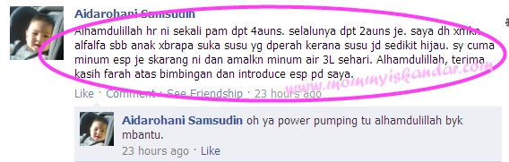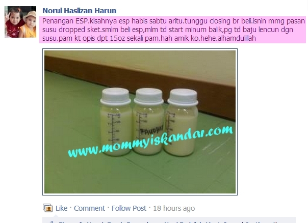 Alhamdulillah..bestkan tengok testimoni di atas? Jika anda ada masalah penyusuan, ESP memang supplement yang WAJIB anda ambil, sebab kesannya tersangatlah besttt.. Dan pastikan anda beli dari pengedar sah Shaklee sahaja ya, dan tau cara pngambilan yang betul untuk mendapatkan kesan maksimum. KONSULTASI PENYUSUAN PERCUMA MENANTI ANDA, HANYA UNTUK CUSTOMER mommyiskandar.my SAHAJA YA..