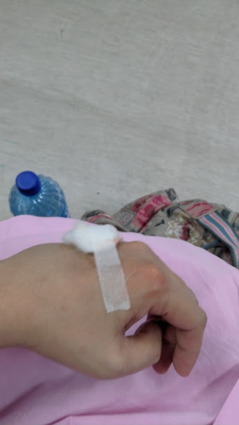 Walaupun agak geram juga, tapi redha je lah. Mungkin ini yang terbaik. Cuma yang agak frust masa tu ialah tangan saya membengkak bagai bonggol unta masa mereka nak pasang tiub. Adoi sakit tau. Dalam hati, ni baru first day, tangan dah bengkak macam ni. Lama nak duduk hospital ni.. harap-harap baik-baik ajelah semuanya. Dua kali cucuk tak berjaya, saya berdegil tak mahu cubaan kali ketiga.