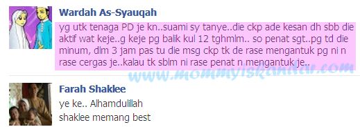 Berikut ialah testimoni pengguna yang telah mencuba Shaklee Performance Drink: