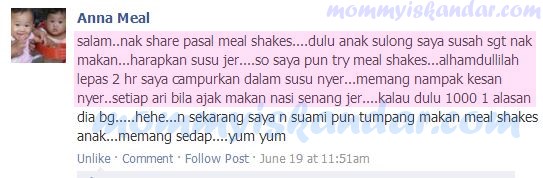 Berikut ialah testimoni ibu bapa yang berpuas hati dengan Mealshake..