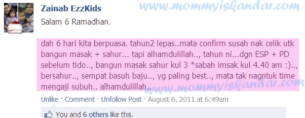 Kalau tahun-tahun sebelumnya, petang je tangan saya menggigil akibat terlalu lapar. Berbeza tahun lepas, dengan Supplement Shaklee saya kekal bertenaga sampai ke petang. Alhamdulillah..
