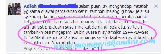 “Salam kak, stok saya dah makin berkurang.. baby minum bertambah banyak.. Camana ya bulan puasa ni,bimbang stok tak cukup”