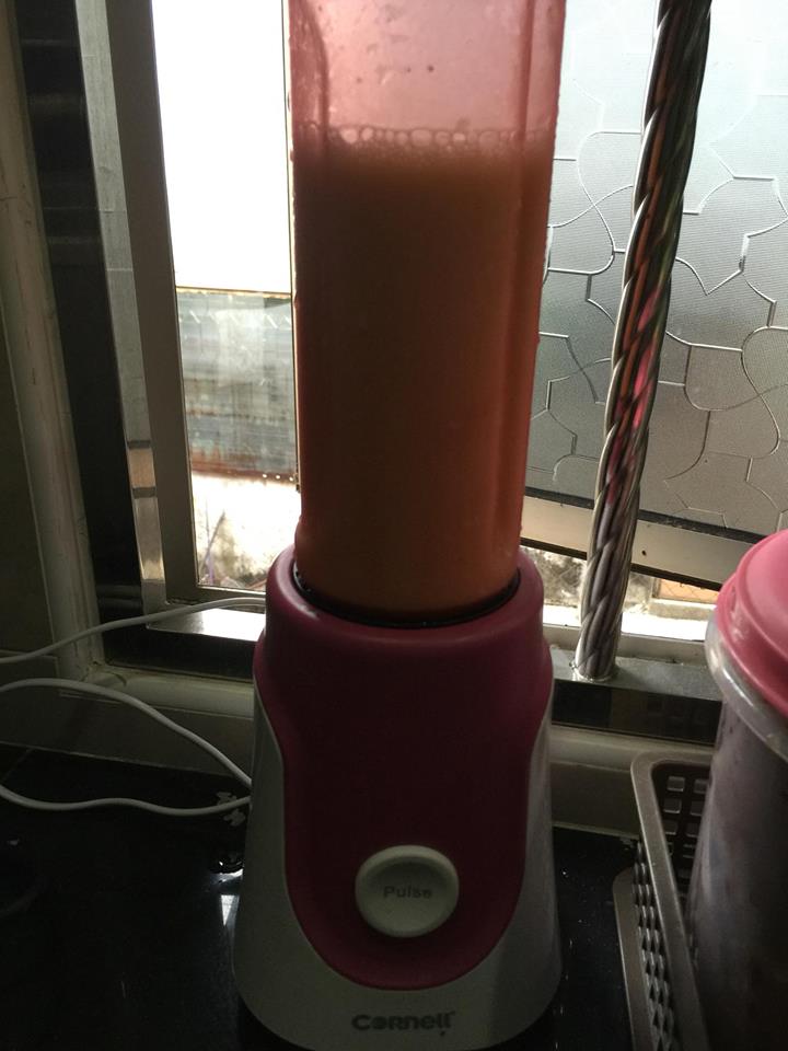 Blend aje lah macam biasa. Kalau guna air suhu bilik, campur setengah cawan ice cube. baru sedappp..