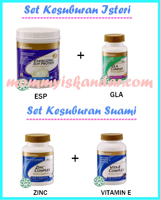Jadi penyelesaian terbaik suami dan isteri kenalah sama-sama beriktiar. Berikut ialah Set Kesuburan Shaklee untuk suami isteri, sebagai salah satu usaha meningkatkan kesuburan bagi mendapatkan cahaya mata..